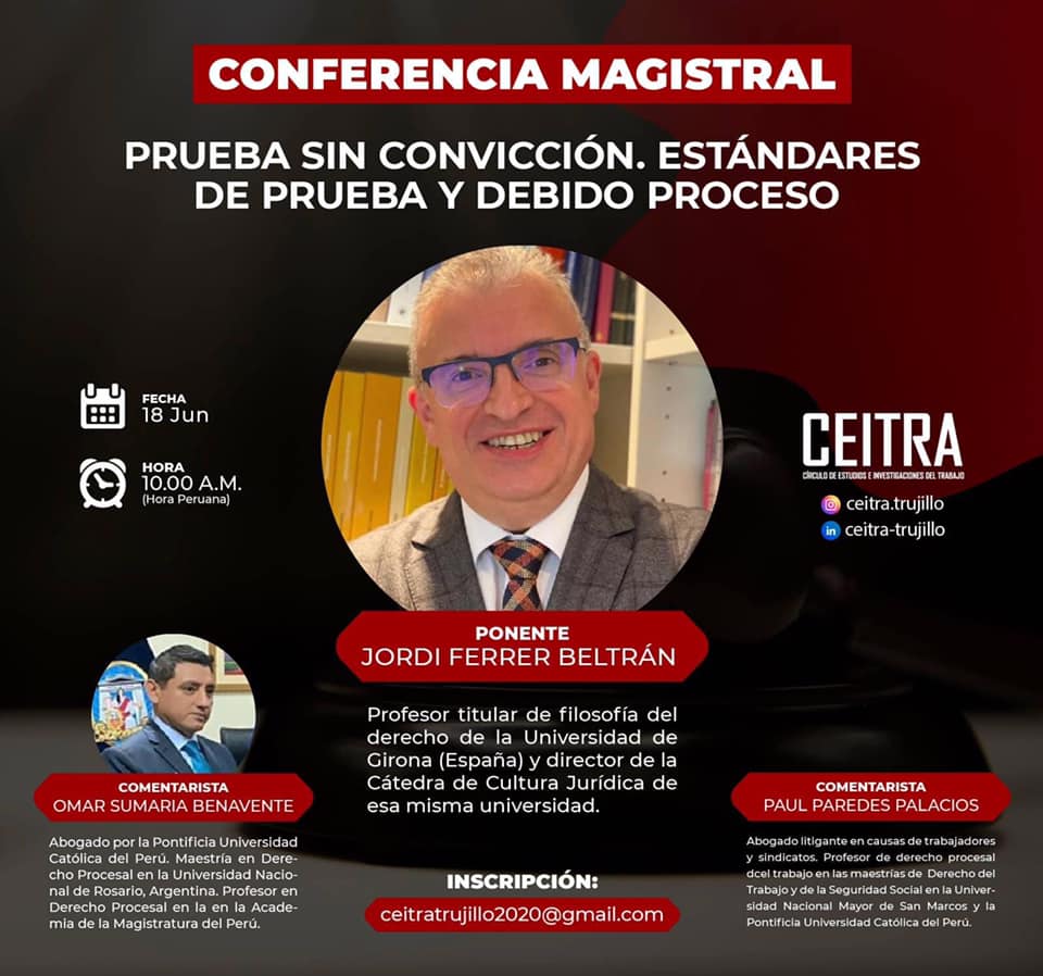 Ponencia a cargo de Jordi Ferrer: “Prueba sin convicción. Estándares de prueba y debido proceso”.